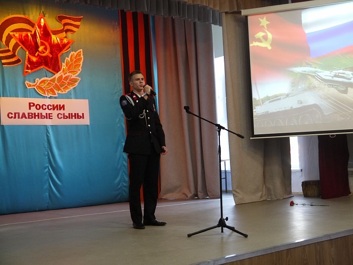 1 февраля 2019 года в МАОУДО ЦВР г. Кропоткин МО Кавказский район был проведен районный конкурс чтецов военно-патриотических литературных произведений «России славные сыны», посвященный событиям ВОВ и воинам – интернационалистам, в рамках месячника оборонно-массовой и военно-патриотической работы в общеобразовательных учреждениях Кавказского района в 2019 году под девизом «Воинский долг – честь и судьба!». Ребята читали произведения поэтов Кубани и России, посвященных подвигам Советских войск в Великой Отечественной войне в локальных войнах по исполнению интернационального долга. Жюри конкурса отметило интерес учащихся к литературе советских и кубанских авторов на военно-патриотическую тематику. Всего в мероприятии приняло участие 22 конкурсанта 111 зрителей. Мероприятие освещено на канале МТРК «Кропоткин», в районной газете «Огни Кубани» и на сайтах общеобразовательных учреждений.
